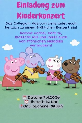 Musik zum Mitmachen für die Kleinsten - Geige & Cello stellen sich vor!Das Streicherensemble Collegium Musicum nimmt Geige und Cello mit - für Krabbelkinder, Volksschulkinder und ihre Eltern. Ganz unkompliziert, gemütlich und lustig - einfach hinkommen, ohne Stress!